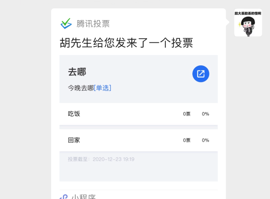 9.选择并发送后,投票将成功释放,发起的投票可以在聊天界面看到。