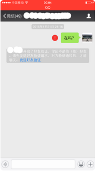 当你给对方发消息时,系统提示对方已经开始好友验证,你还不是他或她的好友。请先发送好友认证请求,待对方通过认证后再聊天。伙计,对不起,你已经昏过去了。