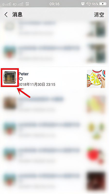 4.在【留言】页面,找到朋友的赞或者评论,点击他的头像。