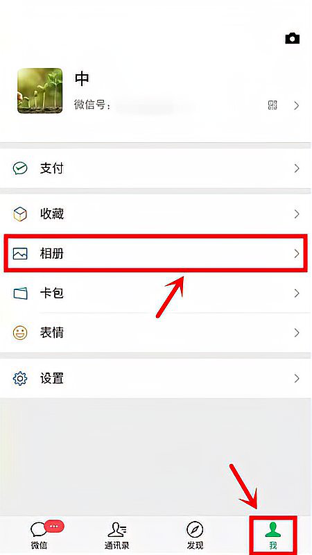 1.同样,点击微信右下角的【我】,选择【相册】。