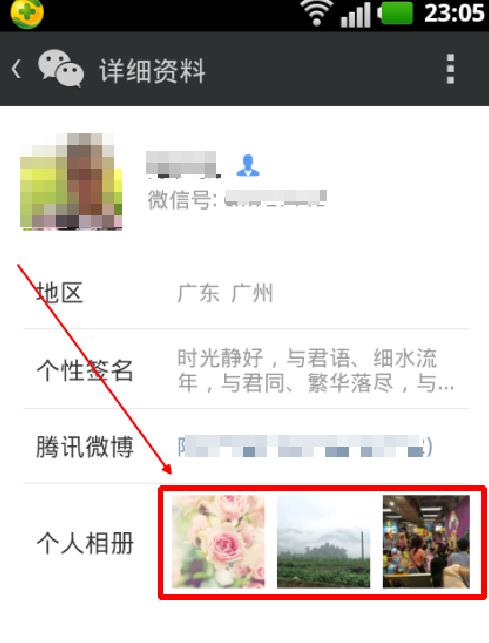2.输入朋友的个人资料后,可以看到他的个人相册。点击【个人相册】进入。