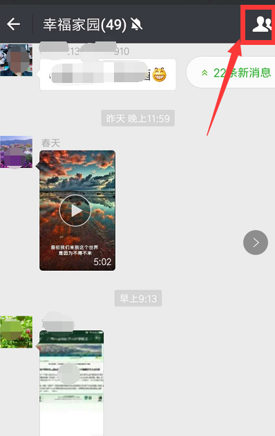 群聊框右上角有一个头像图标。单击它进入组设置。
