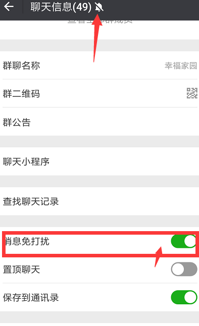 在群设置中,我们看到很多群成员,消息总是响个不停,听腻了。下拉找到“新闻中断”选项。点击打开,然后退出界面,你会发现这个群的消息不会被提示,真的很干净。