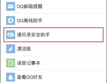 5.打开功能选项后,找到通讯录安全助手。