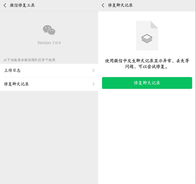 点击后会修复微信的聊天记录,然后重启微信,加载数据后会修复聊天记录。