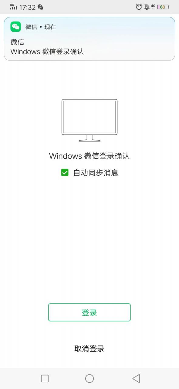 首先,在电脑上登录微信。手机认证出现时,不要马上同意。先勾选【自动同步消息】,然后确认登录。
