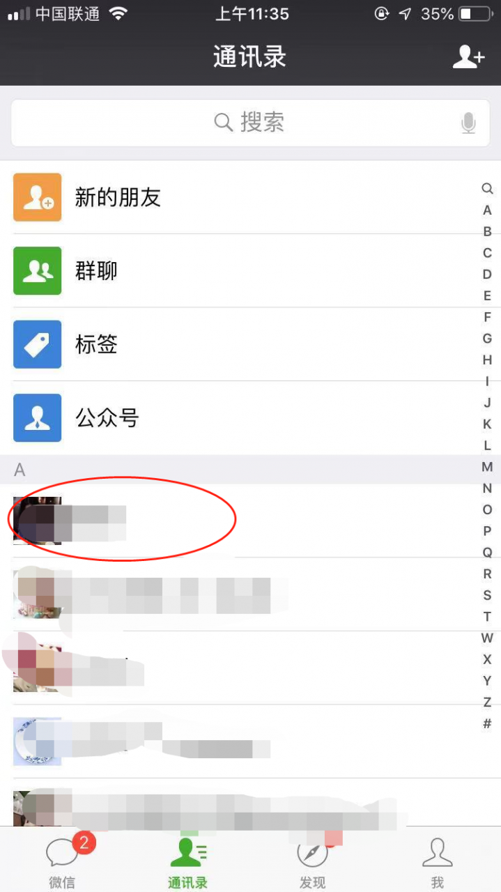 1.点击进入微信,在通讯录中找到需要设置的联系人。