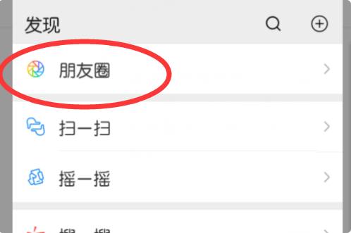 1.首先在微信上点击“发现”,进入“朋友圈”选项界面。