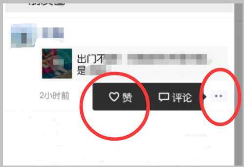 2.找到一个朋友圈,点击“.”符号,并选择“喜欢”。