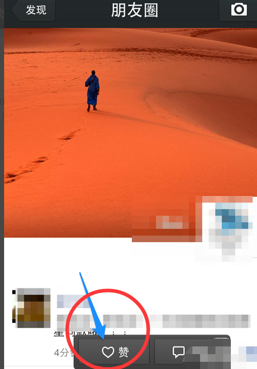 微信赞有两种进入方式。这里先从朋友圈说起。