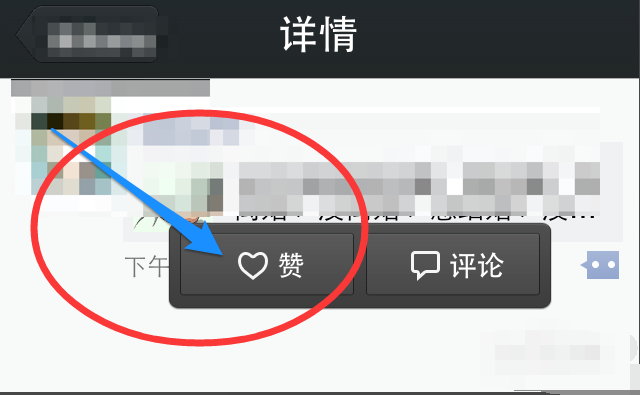 在朋友圈里,发布的动态下面有一个蓝色的图标。当你点击手指时,你会有两个选择:表扬和评论。点击那个赞。