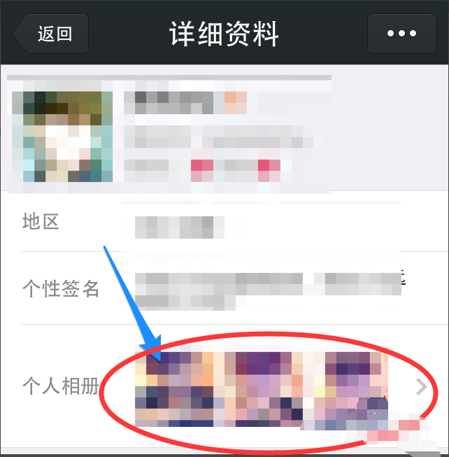 输入朋友的个人资料后,可以看到他的个人相册。点击【个人相册】进入。