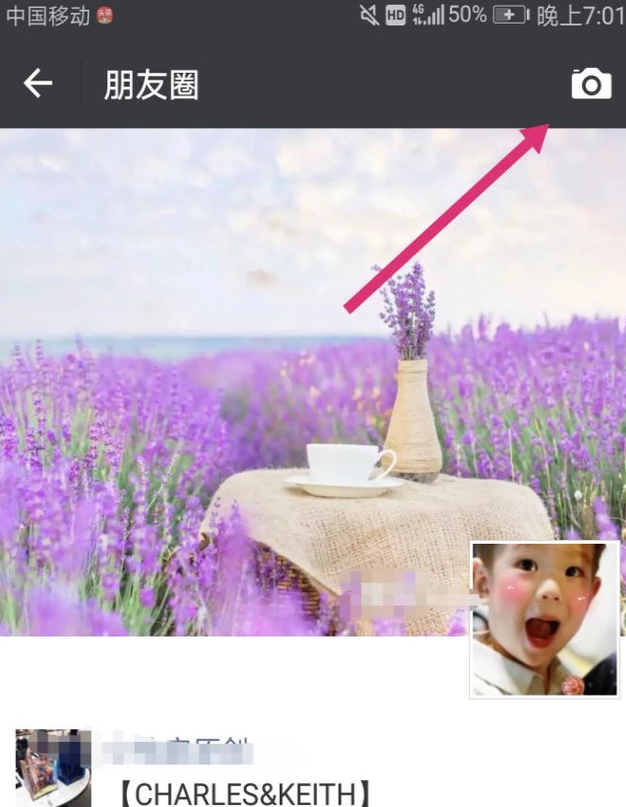 3.然后打开你的朋友圈,点击右上角的相机符号,如下图。