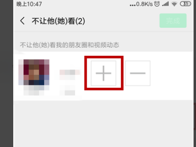 4.然后就可以开始添加不允许评论或点赞的好友,点击【 】,如下图。