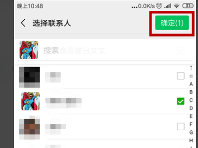 5.接下来会打开微信好友界面,勾选不允许评论的好友,然后点击【确定】。