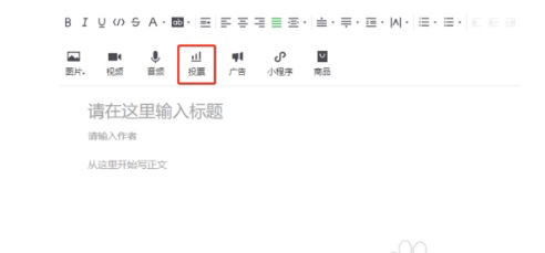 点击素材管理,新建一条图文消息,在消息正文中点击“投票”,找到编辑好的投票内容,插入正文。