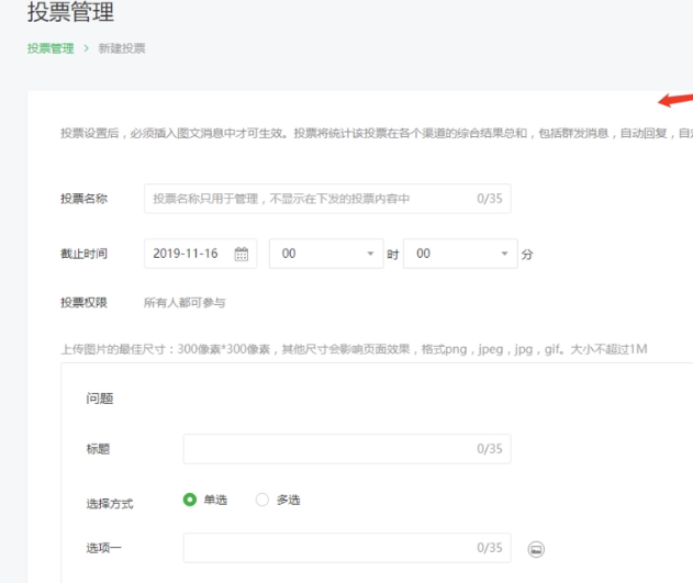 根据提示,输入投票名称、截止日期、标题和投票选项并保存。