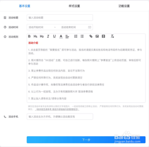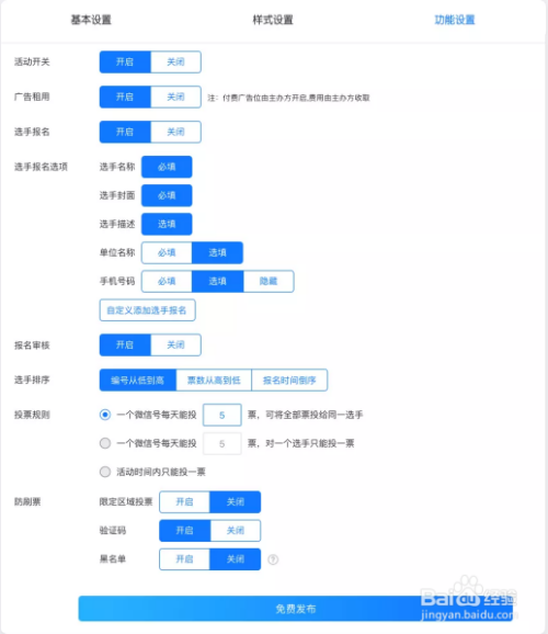 3.第三步:在功能设置中设置活动的投票规则。