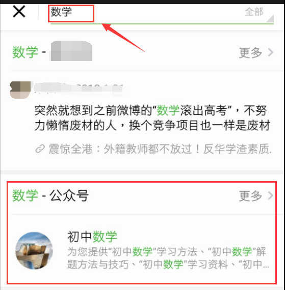 4.之后,直接在上面的输入框中输入对应的微信官方账号,然后相关的微信官方账号就会自动弹出底部。