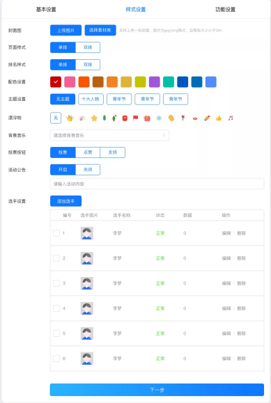 2.第二步是完成风格设置和风格设置中玩家的信息录入;