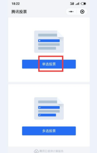 3.点击打开腾讯投票小程序,有单票和多票两种。
