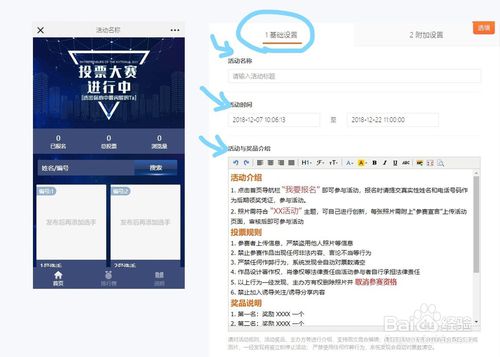 在基本设置下填写活动名称,设置活动时间,填写活动介绍。