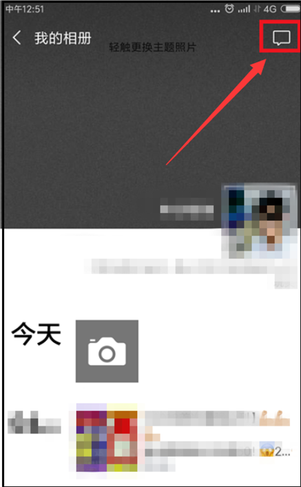 4.进入【我的相册】界面后,可以看到右上角有一个方框的标记。点击图片中标记的选项。