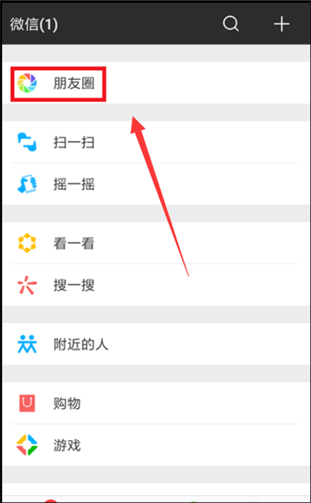 2.在发现界面找到“朋友圈”这个词,然后点击进入朋友圈。