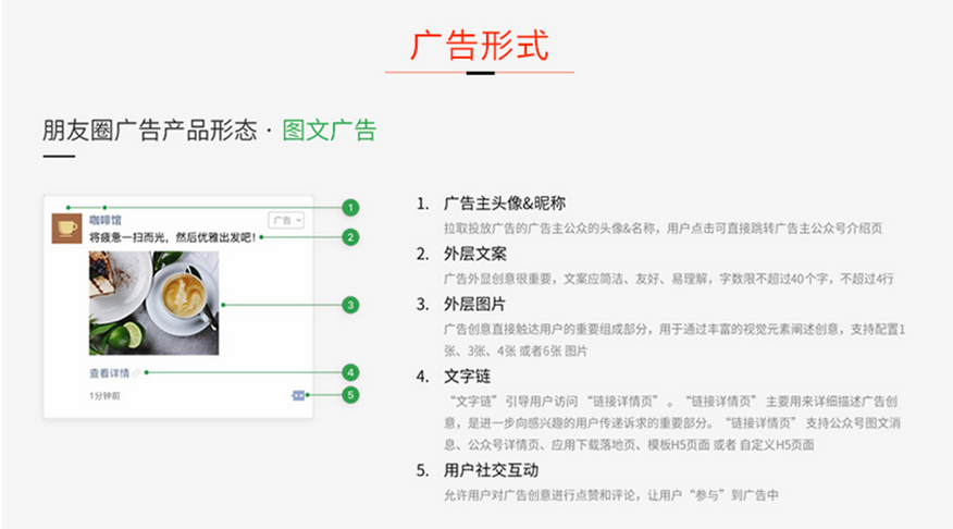 微信朋友圈广告是基于微信微信官方账号生态系统,以类似好友的原创内容形式在朋友圈展示的原生广告。用户可以通过点赞和评论进行互动,依靠社交关系链进行传播,给品牌推广带来了加法效应。