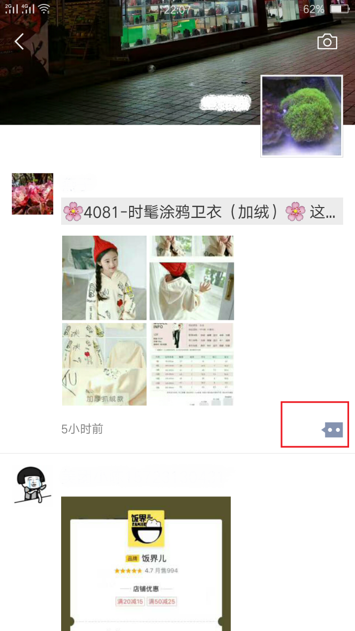 4.进入朋友圈后,找到想要点赞的朋友发的朋友圈,找到下图所示的图标。