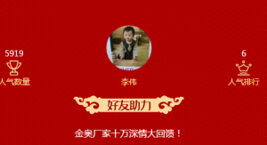 4、活动按排行榜的“人气”进行排名,获得相应的奖品;