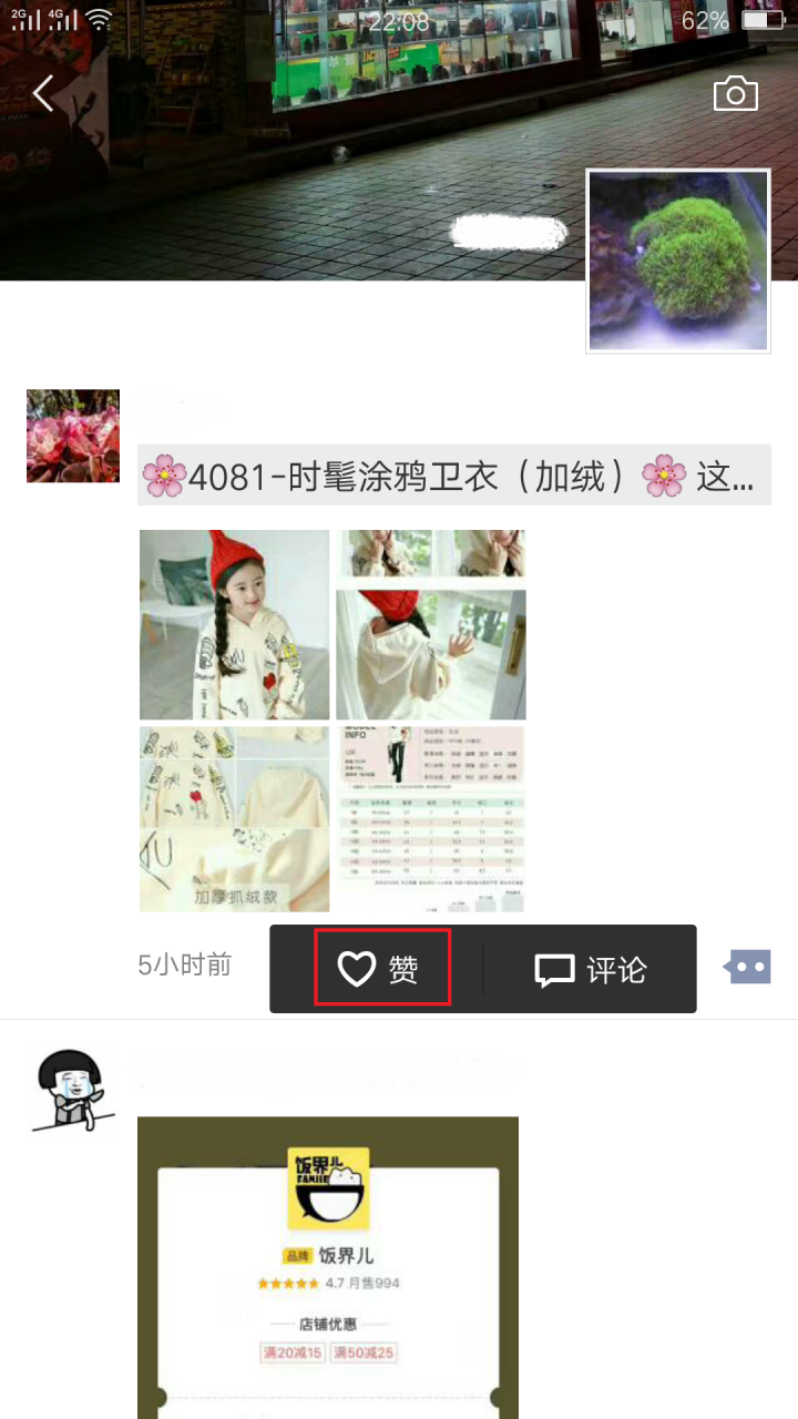 4.进入朋友圈后,找到想要点赞的朋友发的朋友圈,找到下图所示的图标。