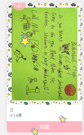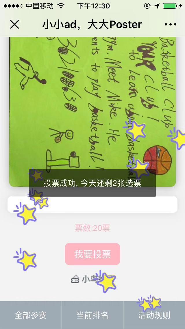 同学们,我们通过六年级上册英语UNIT4 READ AND WRITE的学习活动,认识了好多生动、有趣、有吸引力的社团海报呢!我们也小试牛刀一下吧~~~小组合作,探讨主题(从个人兴趣出发),发挥每一个人的力量,团队制作!!快来看看我们自己制作的海报广告吧,如果您喜欢我的作品,请您投下珍贵的一票!谢谢~