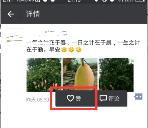 微信朋友圈喜欢的方法。