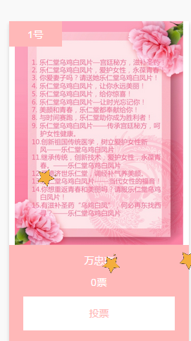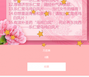 1、本次“金凤凰”健康美颜计划之广告征集令的投票界面,投票作者排名顺序不分先后,随机产生。