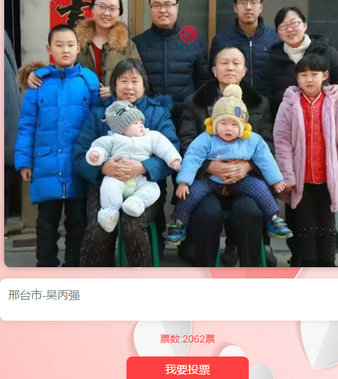 参与本次活动的全家福照片是唯帅公司评委团在众多的参赛照片中精选出62位选手提供的照片,有一家三口,有幸福大家族等,他们质朴祥和、欢乐甜美,这一瞬间定格住我们美好的记忆和幸福时刻;本次活动将在这62张全家福照片中选出前12名,这12名参赛会员本人将荣获唯帅公司提供的价值1688元的“厦门鼓浪屿双飞游”大奖;第13名到第60名将荣获唯帅公司提供的价值198元唯帅购裤券一张。投票结束后,唯帅公司会按照人气排名公布获奖名单,并联系获奖者确定发放奖品事宜,相关奖品会在2019年兑现。