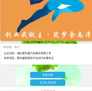 2、10月15日–20日,由县人社局牵头,组织相关单位,联合此次大赛委托机构聘请的专家评审团,对所有报名选手提交的《创业计划书》进行初审,项目初审结束后,专家评审团共评定出69个符合大赛要求的项目,从今天(10月22日)起,这69个项目将在南漳发布进行为期10天的集中公示和网络投票,投票截止日期10月31日,大家可以根据投票公示的企业信息和申报项目,对自己看好的“创客”投票!