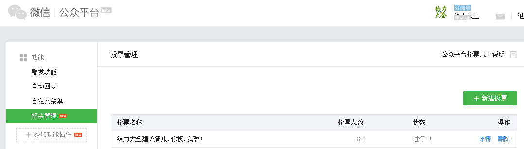 微信公众平台投票功能只有一个投票怎么操作