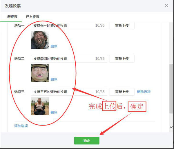 编辑投票内容:填写投票主题、投票类型(单个或多个)、投票截止时间、选项设置。如果没有足够的选项,单击添加选项,但最多只有6个选项(至少目前是这样)。
