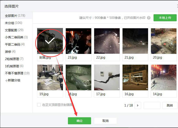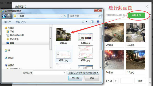 [5]上传封面(从图片库选择)-确定(勾选要上传的)。