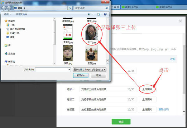 进入公共平台=“管理=”物料管理=“图形消息=”多图/单图=”进行投票。