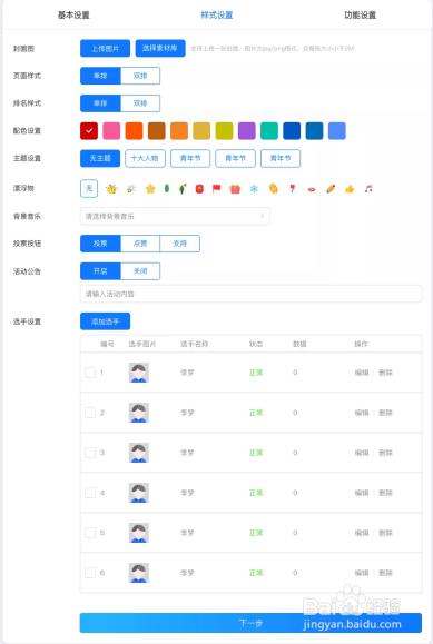 2.第二步,完成适合活动主题的风格设置,在风格设置中输入玩家的信息;