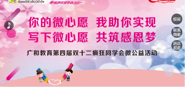 “点亮微心愿,圆梦双十二”微公益活动,弘扬中华美德,倡导感恩父母。由【广和教育集团】筹备专项公益基金,帮助在校的孩子们表达孝心,实现微梦想。