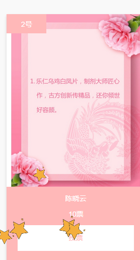 1、本次“金凤凰”健康美颜计划之广告征集令的投票界面,投票作者排名顺序不分先后,随机产生。