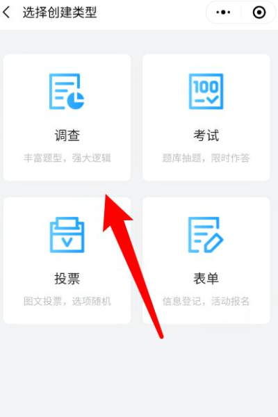 进入微信页面点击右上角的搜索图标,搜索问卷星点击进入,点击创建问卷这个选项。最后选择要制作问卷调查的类型即可,详细步骤: