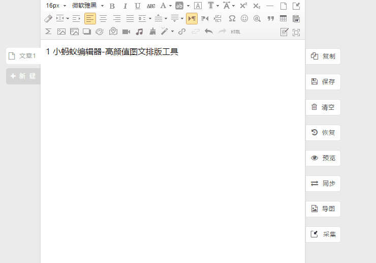也是一个偶然的时间。有同事推荐小蚂蚁微信免费编辑器。用了之后,真的觉得这个编辑器操作起来很方便。不仅支持快速完成排版,给我留下深刻印象的是很少提供几十种功能,完全满足编辑工作的苛刻要求。