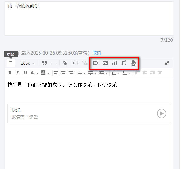 1)音乐的选取只能选择QQ音乐里的,一个图文消息支持多个音乐。