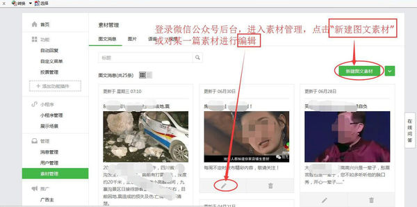 点击素材管理,新建图文消息,在消息正文中点击“投票”找到已经编辑好的投票内容就可以插入正文了。