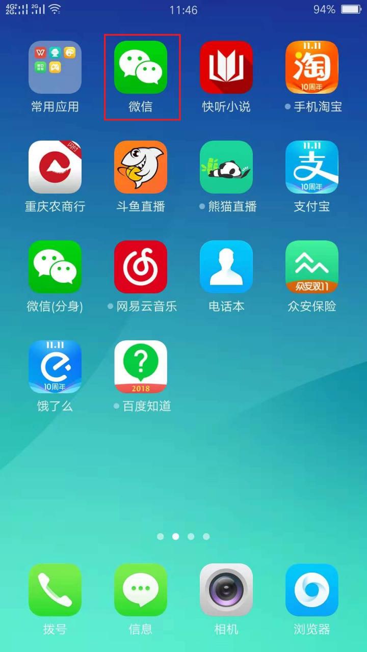1.打开手机,在手机桌面找到“微信”项,点击进入。