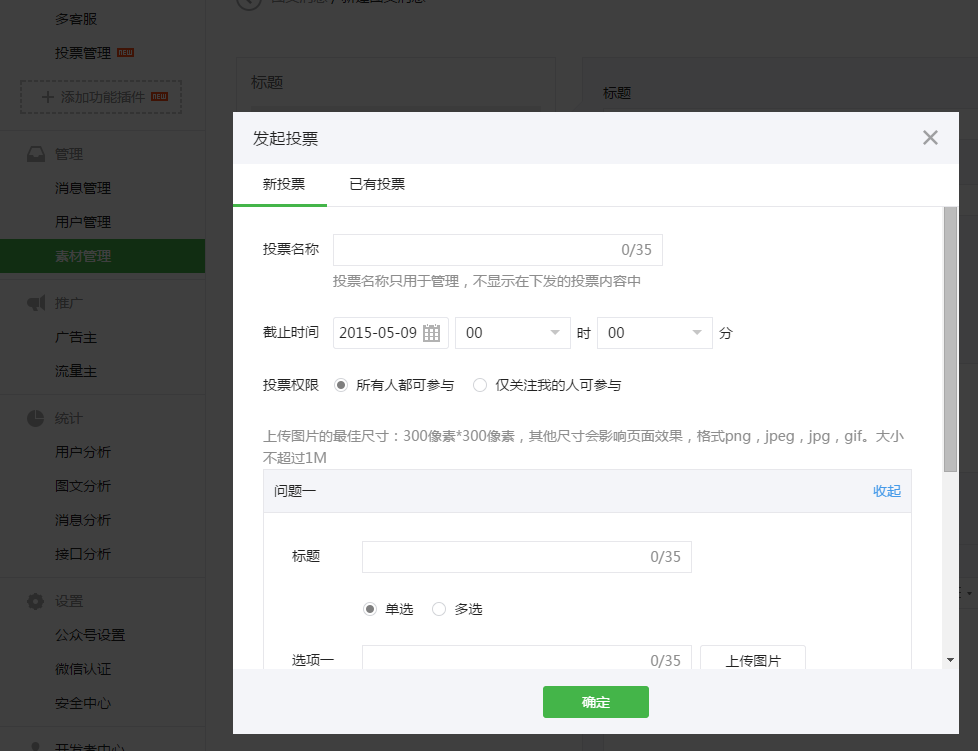 接着再为素材添加好一个标题,也可以选择一张图片,然后在正文中输入一些投票的说明文字,如图所示